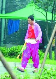 前日下午2时左右,小沈阳在几位工作人员的陪同下走出摄影棚。一身“粉装”的他,里面竟然穿了一件露脐的红色肚兜,看起来更像是二人转演员!看来,在片中负责搞笑的小沈阳,穿着打扮也跟老本行相似,演起来应该会更加得心应手。与小沈阳的搞笑打扮相比,孙红雷的造型多了一分英武之气。在摄影棚外打电话的孙红雷,身着蓝衣蓝裤,外面套了一件黑色护甲,看起来像是一个忍者。