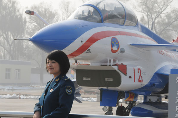 实拍英姿飒爽的漂亮女兵与歼10双座表演机(组图)