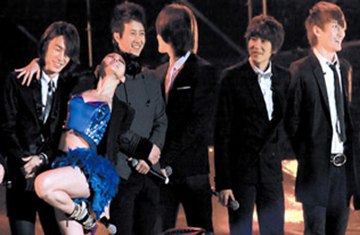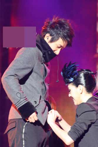 有眼尖媒体发现,当小S一边帮Super Junior-M的队长韩庚整理裤子,一边摆出挑逗姿势时,韩庚竟疑似出现生理反应。看到