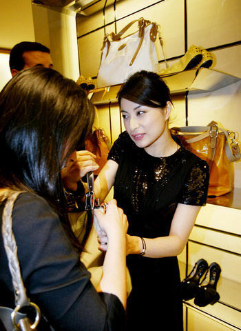 赴大连出席奢侈品牌TOD'S开业庆典。一向淡妆示人的郭晶晶这次的扮相让人耳目一新,浓艳的妆容与服饰和发型搭配完美,映衬出了她洁白的肌肤和窈窕身材。身着黑色小礼服的她举止优雅大方,举手投足间已颇有上流名媛的风范。
