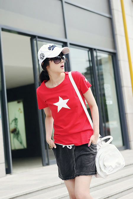 红色星星T,色彩超正,红白搭配注目度一流。