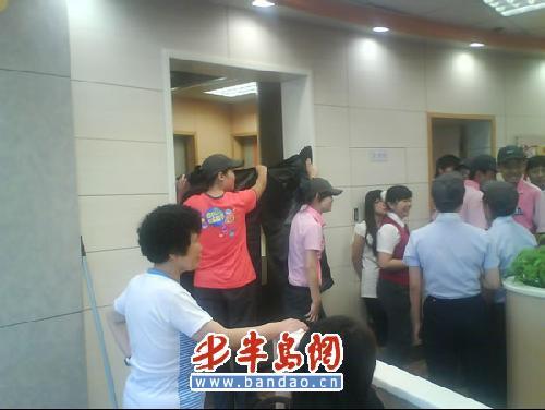 记者恰好在易初莲花附近,接到小王的电话之后迅速赶到了肯德基。这时候,肯德基店内的员工拿出了不少垃圾袋,将卫生间的门挡了起来,同时店面经理表示已经拨打了110。