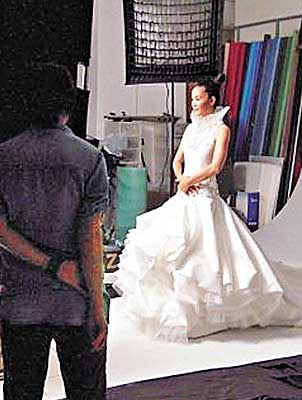 照片,在该辑相片中的王菲穿了两套衣服,一款是红色长裙,另一款是全白的宫廷婚纱装。