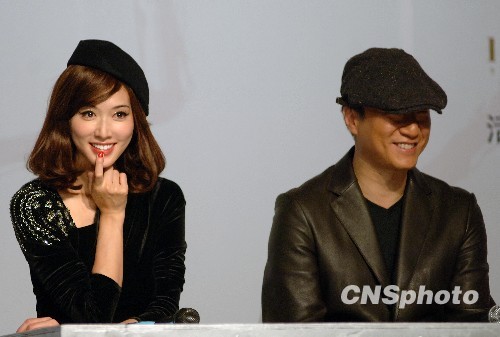 地震》同期上映,很可能引起一场票房大战。图为在发布会上,孙红雷、林志玲一见面便“相见恨晚”,二人紧握的手久久不愿松开。林志玲更是行“屈膝大礼”,透露一直喜欢孙红雷的硬汉形象。中新社发 李学仕 摄