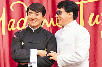 成龙蜡像入驻好莱坞 真身捧场摆姿势合照(组图)