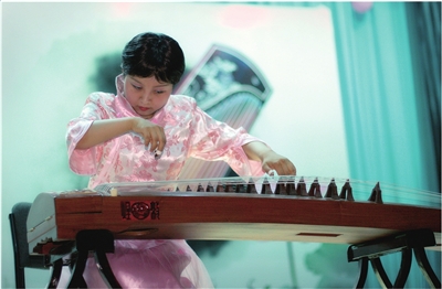 杨帆在舞台上用古筝演奏。本报实习记者刘浩宇摄