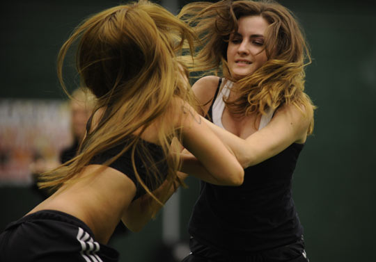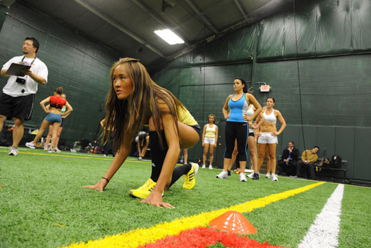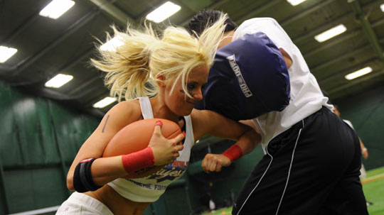 纽约举行内衣橄榄球选拔赛 热辣美女激烈竞争(组图)