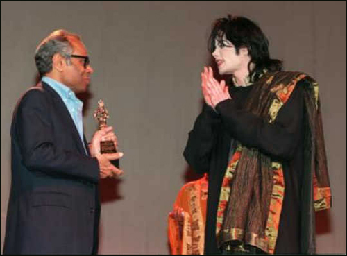 印度前总统科奇里尔纳拉亚南为迈克尔杰克逊颁奖