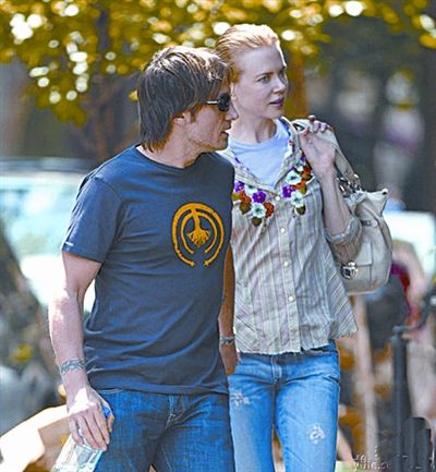 妮可基德曼和老公凯斯厄本8日到纽约某服装店扫货。她身穿一件绣花衬衣,内罩一件棉质长衫,打扮非常密实,令人猜测她是否再次