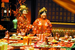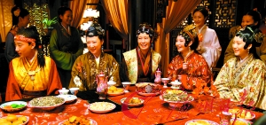 李少红介绍说,“荣国府元宵开夜宴”是全剧重中之重,“在曹雪芹的原著中,这段戏是非常出名的,不仅人物多,台词长,而且也有暗喻之意。这顿夜宴之后,贾府便走向了没落。”在拍摄现场记者看到,数十名演员围着长桌而坐,其中女演员们“铜钱妆”在现场布景的映衬下显得并不那么突兀,灯光布景等细节与《大明宫词》则有些许相似,还是李少红导演一贯的风格。