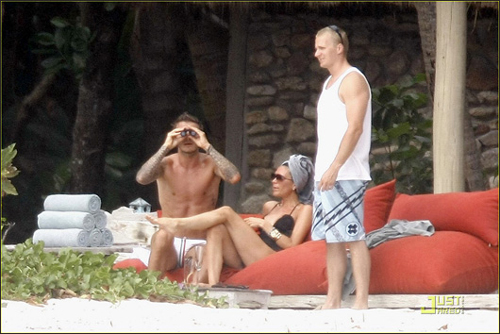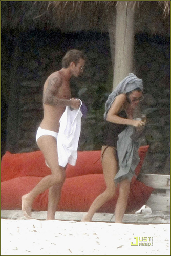 当晚,维多利亚又出现在伦敦时装周后的派对晚宴上。相对于耳熟能详的大牌超模,贝嫂5英尺4英寸的身材难免显得有些过于精悍了,好在对见惯了大场面的维多利亚来说,高跟鞋永远都是解决问题的金钥匙。白色系露肩小礼服加上一双蓝色磨毛12英寸以上的高跟鞋巧妙地抹煞了辣妹的真实身高。谁曾想,坐在高级轿车里的辣妹不慎露底泻春光,这一幕还是没能逃过狗仔队的火眼金睛。