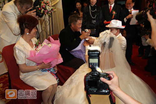 赵本山当日出席婚礼,并上台与张雯婷父母一起接受二位新人敬茶与献花。而整个大婚现场依旧延续中国传统文化风格,无论是在给长辈敬茶、敬酒还是献花时,新人都需单膝跪地,颇具礼仪。当天赵本山心情大好,现场表示“所有赶来的嘉宾都辛苦了,大家的吃住我都包了,请大家今天一定要吃好喝好。”婚宴开始后,媒体依旧围着赵本山所坐主席不散,风趣的赵本山边夹菜边无奈地笑着说道:“这都夹菜了,大家别拍了,快去吃饭吧。 ”略带东北腔的口音逗得现场一阵欢笑。记者:冯紫剑