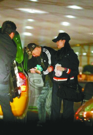 董洁、潘粤明乘出租车去机场,开始了他们的蜜月之旅。
