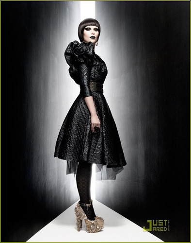 ,黑色的浓重烟熏妆配上了黑唇黑发,