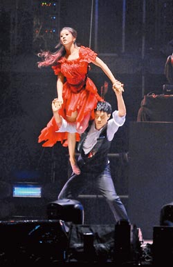 他不顾脚伤,开场的360度无重力凌空反转,倒转时还缩起双脚,证明不是靠磁铁吸住,全场惊呼,首次挑战自弹自唱,在飞天钢琴上竟四度重来,又和许慧欣唯美“飞天双人舞”爆点连连。