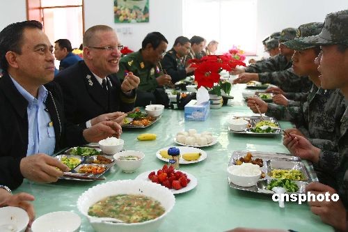 导弹营。武官们参观了该营红二导弹制导设备和发射阵地以及士兵宿舍,并和官兵在连队食堂共进午餐。按惯例,中国国防部外事办公室每年都组织驻华武官参观中国相应军种的部队或院校,目的是展示中国军队更开放的形象,加深各国驻华武官对中国各军种的认识和了解,同时增长中国部队官兵对外交往能力。