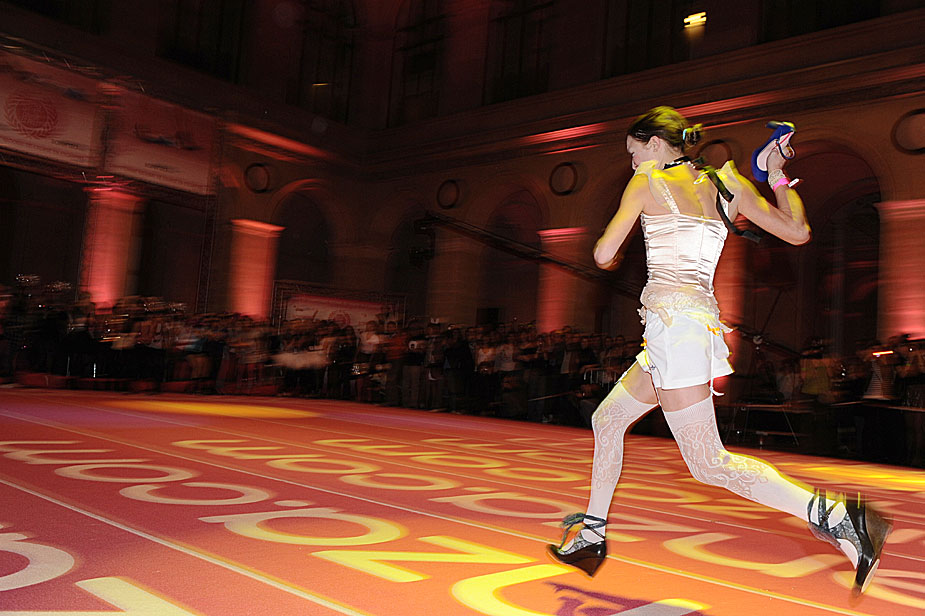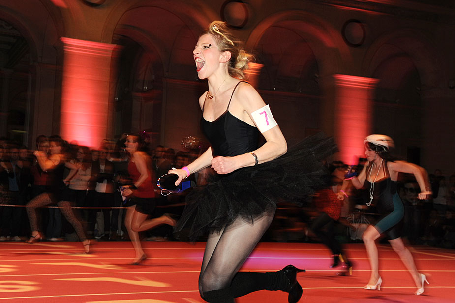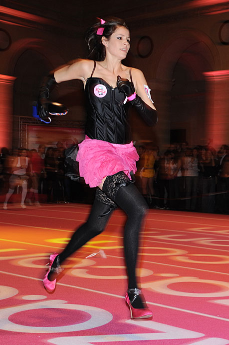 美女很疯狂:法国巴黎举行室内高跟鞋赛跑比赛(组图)