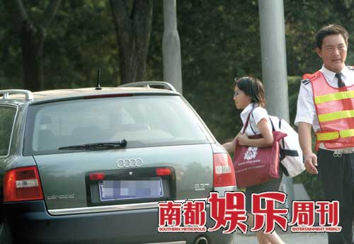 六一节前的某天下午4点半左右,窦靖童所在学校放学的时间到了,学生们三三两两地出门坐车,这时记者看到李亚鹏那辆老式的绿色奥迪旅行车开进学校,开车的正是天后本人。