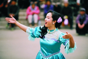 蒋雯丽在《立春》中的龅牙歌唱家形象。