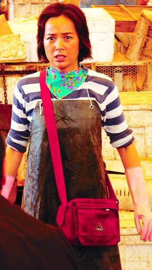 我没觉得我在扮丑。我去体验生活的时候发现那些卖海鲜的女性脸都红扑扑的,有点像高原红,农村女孩子一般都会有的。我让化妆师在脸上打上这种高原红,还又多点了些雀斑。我本来脸上就有雀斑,更真实更生动一点吧。很多服装也都是服装师从当地卖海鲜的人那里收集来的。其他就没有了。因为我本身的气质比较城市化一些,人家一看还觉得像个老师什么的,所以我需要自己在外形上做得比较靠近她们,否则演出来很不像。