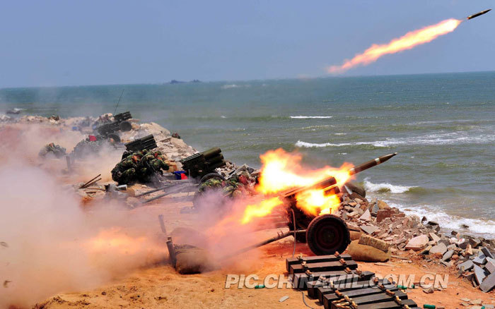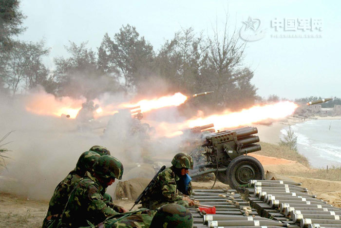 壮观:轻型107毫米火箭炮群实施密集火力覆盖(组图)