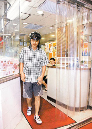 晚间10时15分,他先招来丰田7人座车把他心爱的小单车载走,接着他头戴安全帽与墨镜一语不发跳上出租车离去。
