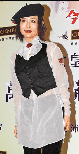 她38岁演《一代女皇》扮武则天晚期时,曾破例露出额头。