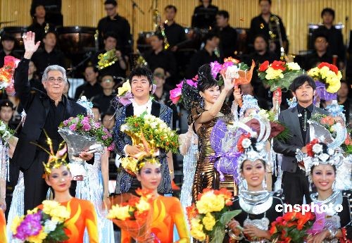 周杰伦坐龙椅出场独唱《霍元甲》。宋祖英多明戈携手《爱的火焰》,多明戈还用中文演绎了《康定情歌》的部分片段。