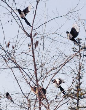 不过喜鹊们还是不依不饶,后赶来的喜鹊又在林中大叫报信,很快就有十多只喜鹊加入战斗,被围攻的大黄和大花嘴爪并用也抵挡不了喜鹊的袭击。