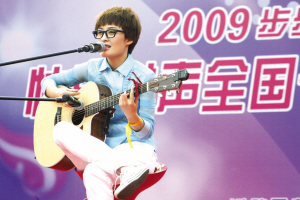 曾:嗯,最初是写歌词,当时是初三,因为考试压力大,就自己涂涂画画写出来了。开始有曲谱配歌词是高三的时候,会弹吉他了。《学习×××的日子》(由于她说话声音实在太绵羊,重复了3次,记者还是没听清楚歌名),是一首校园歌曲,这是第一首完整的歌,也是完整的曲,就为了鼓励考英语专业四级的人们,加油、努力,只唱给自己的朋友听过。大家觉得,还行吧。