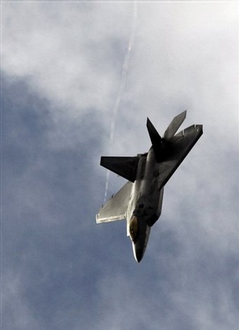 资料图:7月14日 英国范堡罗航展上的F-22 这是它首次在美国本土以外表演