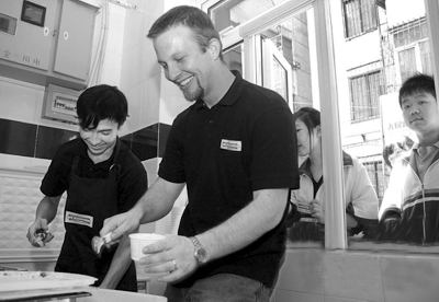 贾斯汀在为顾客调制冰淇淋。陈 峰摄