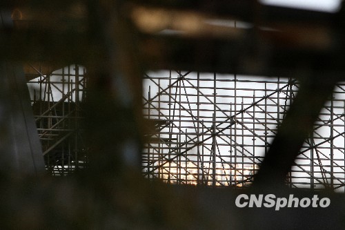 央视新址大火中被烧的央视新址配楼改造方案的论证已经开始,10月26日在过火大楼的南侧,已经搭起了数米高的脚手架,现场工作人员表示,该楼将重新进行外墙装修。中新社发 鲁谷 摄