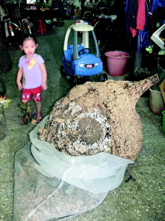 台湾发现1.2米超大蜂巢 料虎头蜂数逾2万只(图)
