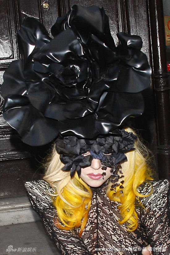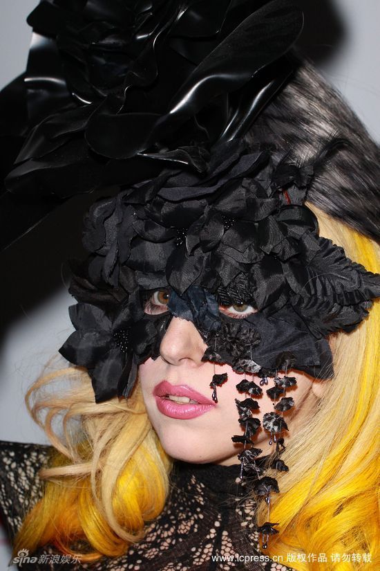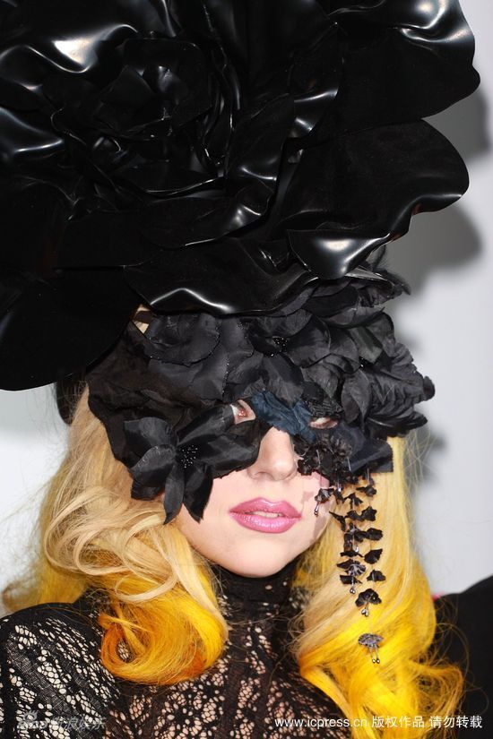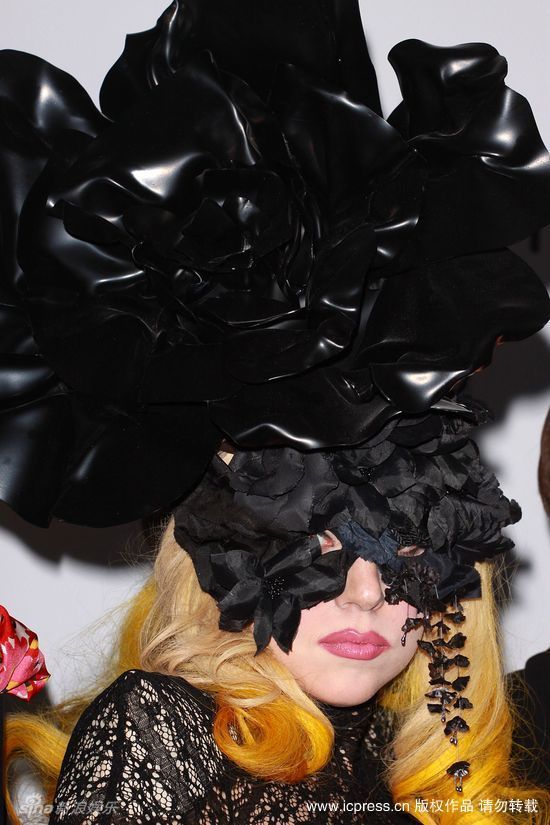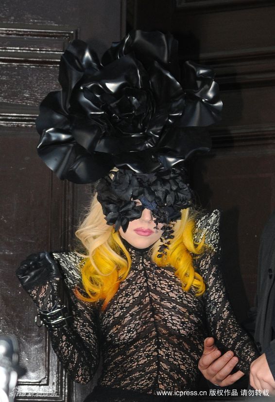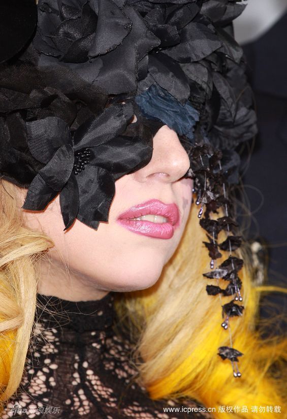 Lady Gaga雷人透视装若隐若现 黑色丽花头抢镜(组图)