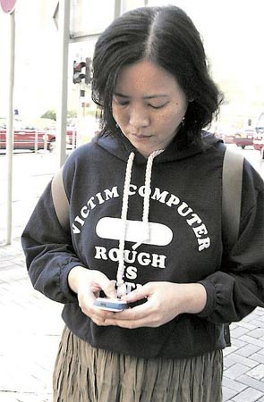 面容憔悴的蓝洁瑛不断把玩手机。图片均来自香港《明报》